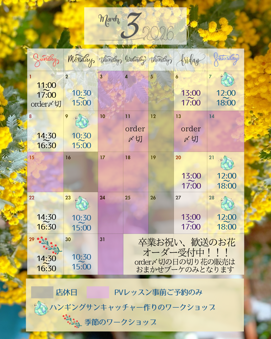 3月🌷卒業、歓送迎のお花のオーダーお急ぎください♪