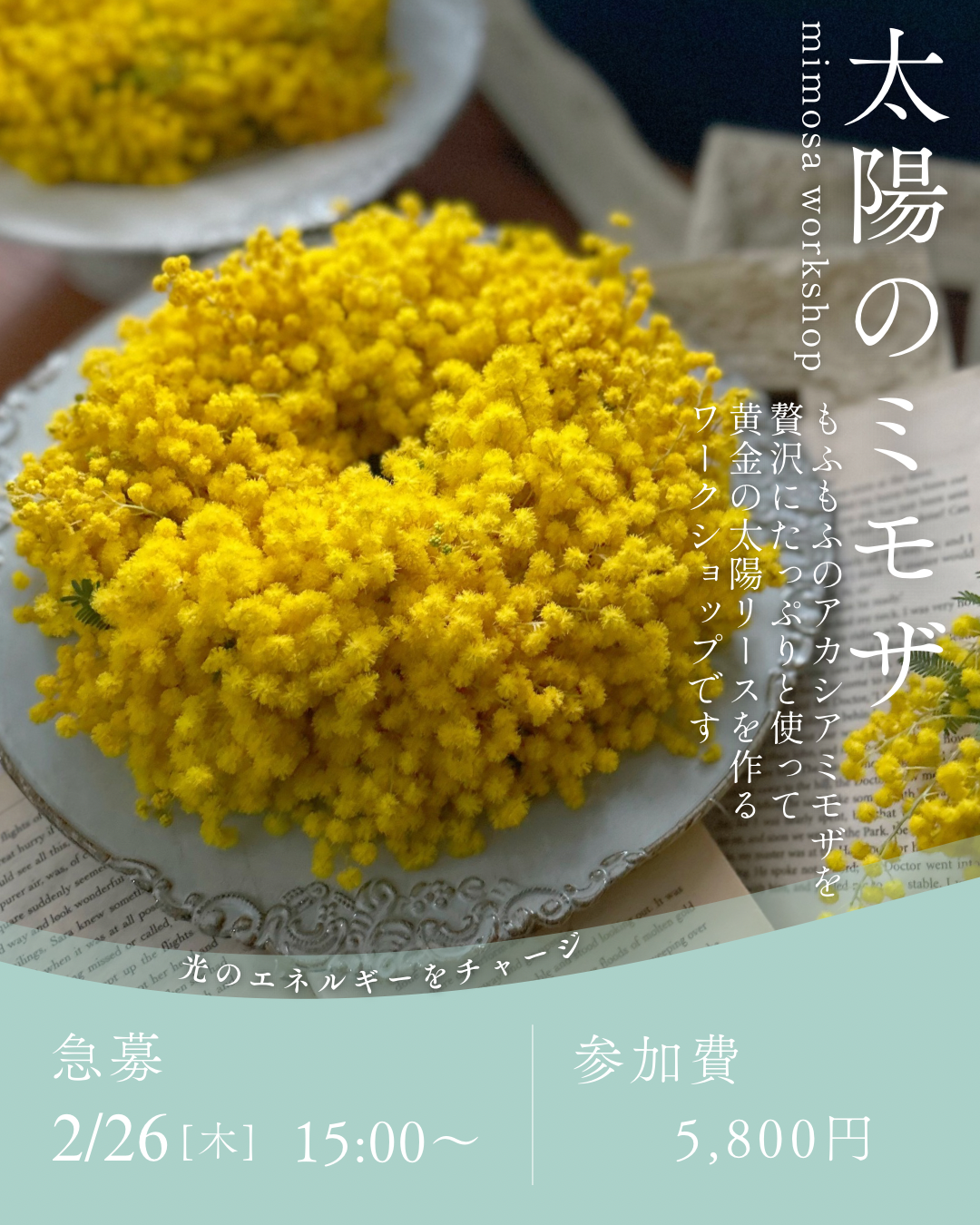 もふもふミモザの太陽リース作りワークショップ